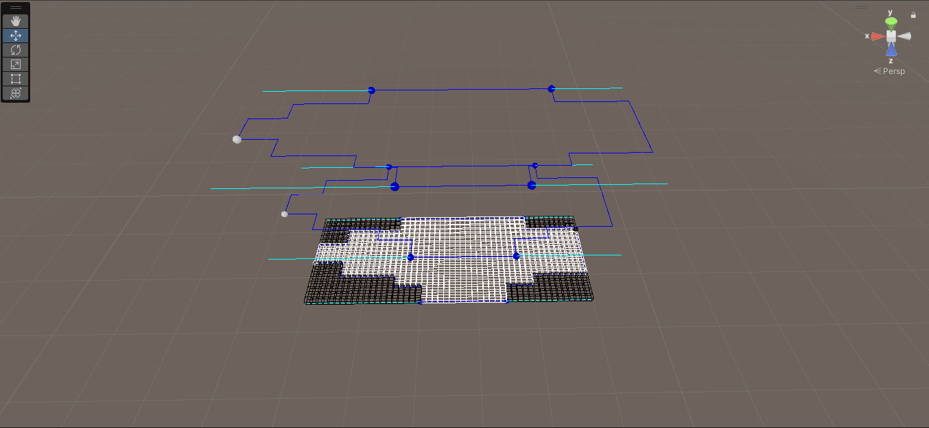 Прототип со следующими механиками: заполнение пола по ячейкам, заданным в эдиторе; выбор и размещение зданий по сетке; диалоговая система; переключение этажей у строения.